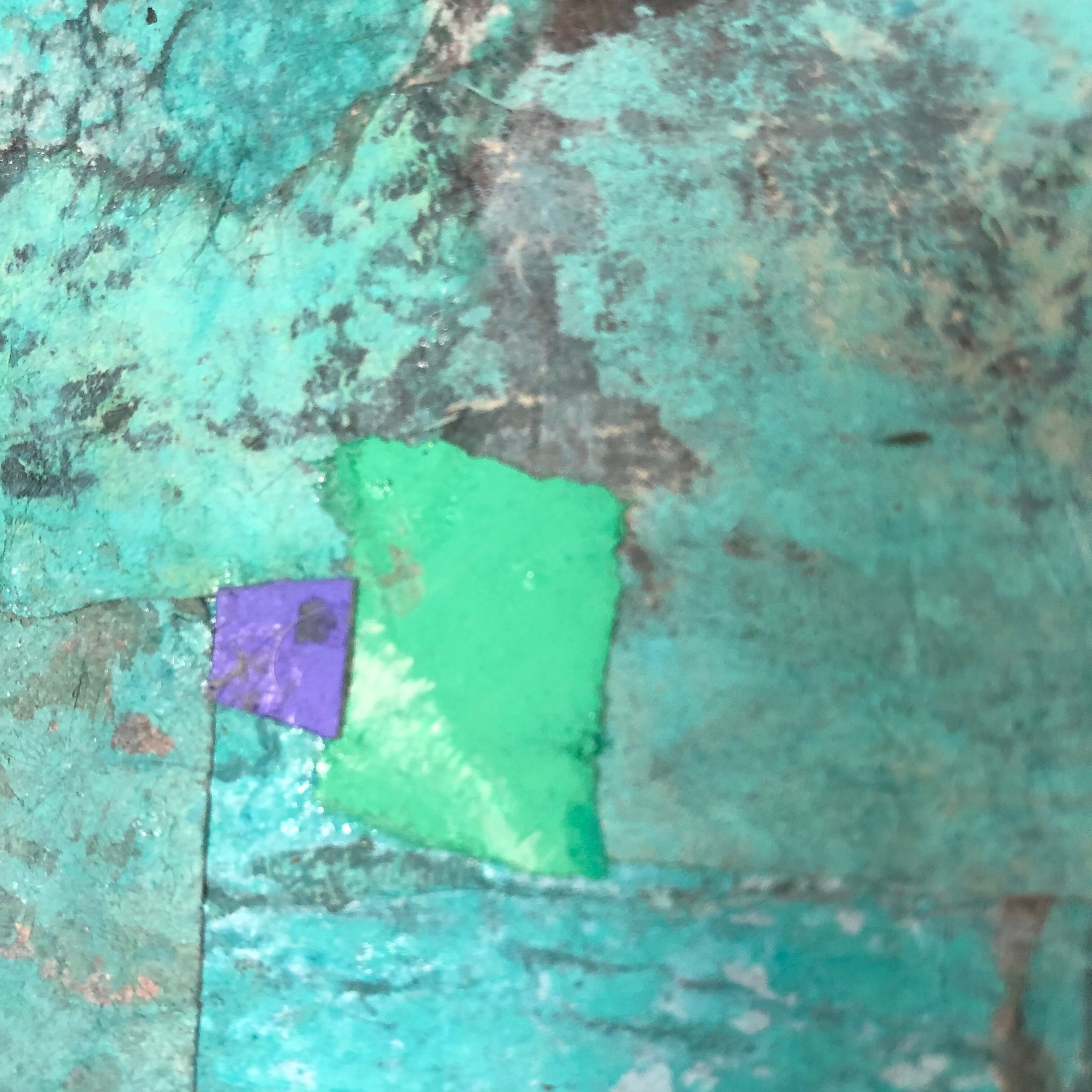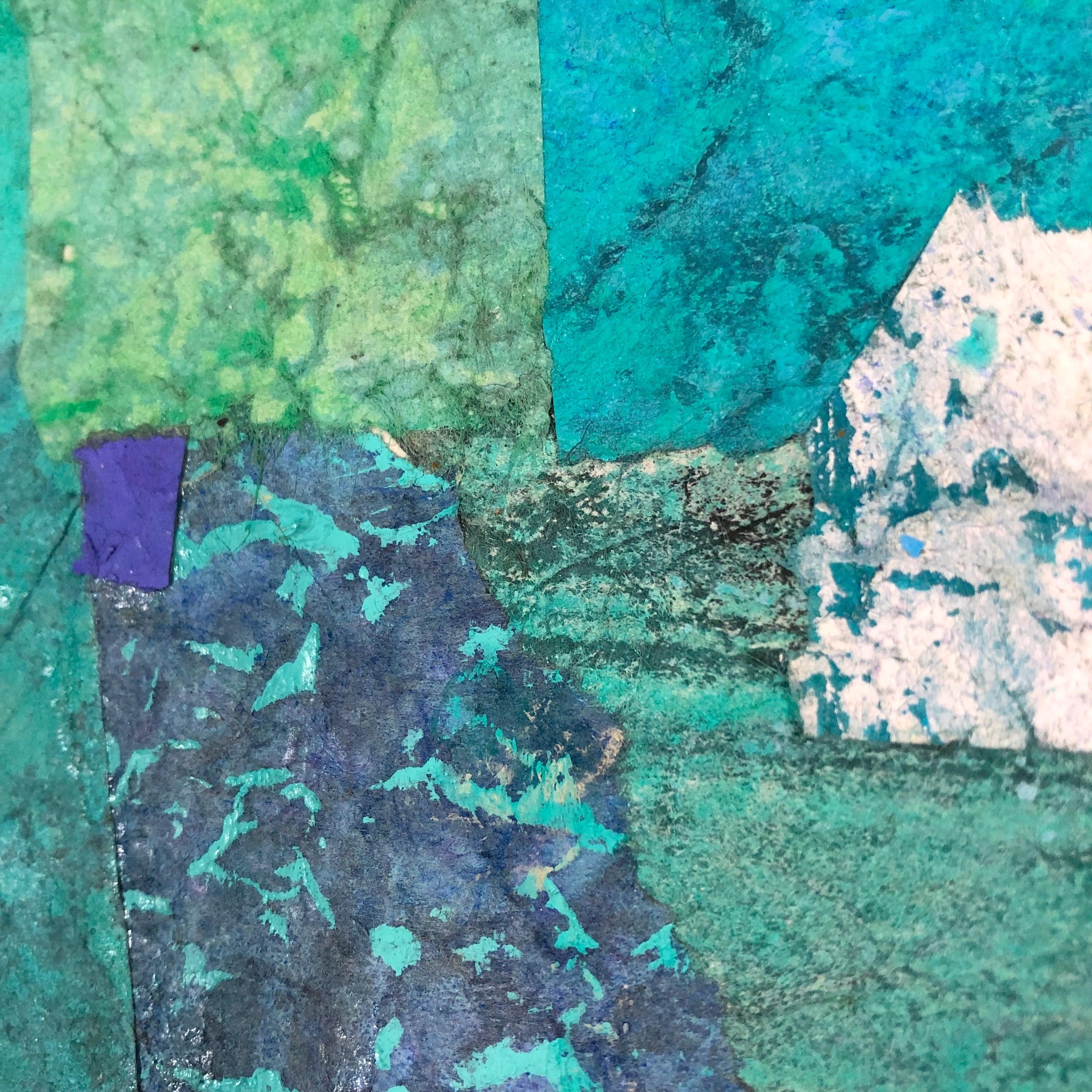 私はダイヤを磨きカット面を作るように、何層にも絵の具を塗ったり刷ったりした色面の 和紙片を