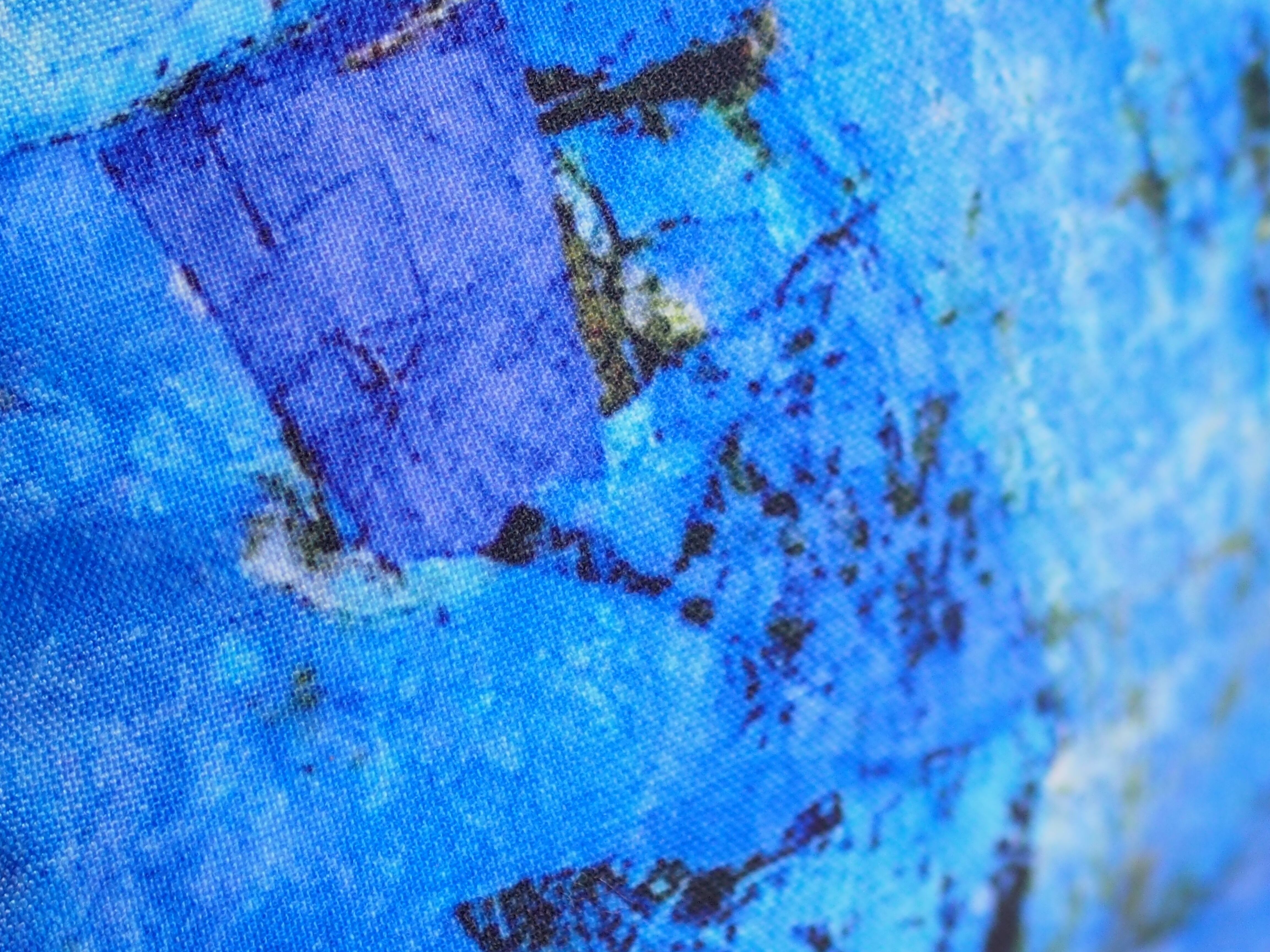 モロッコの青い街シャウエン。その幻想的な街をイメージした抽象画を、クッションにしてみました。